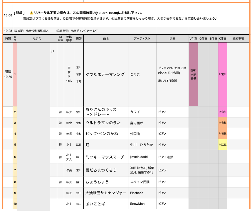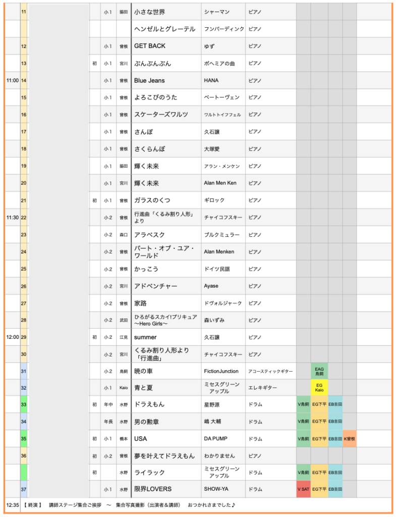 「スナフキンズ音楽教室 生徒ライブ2026」タイムテーブル